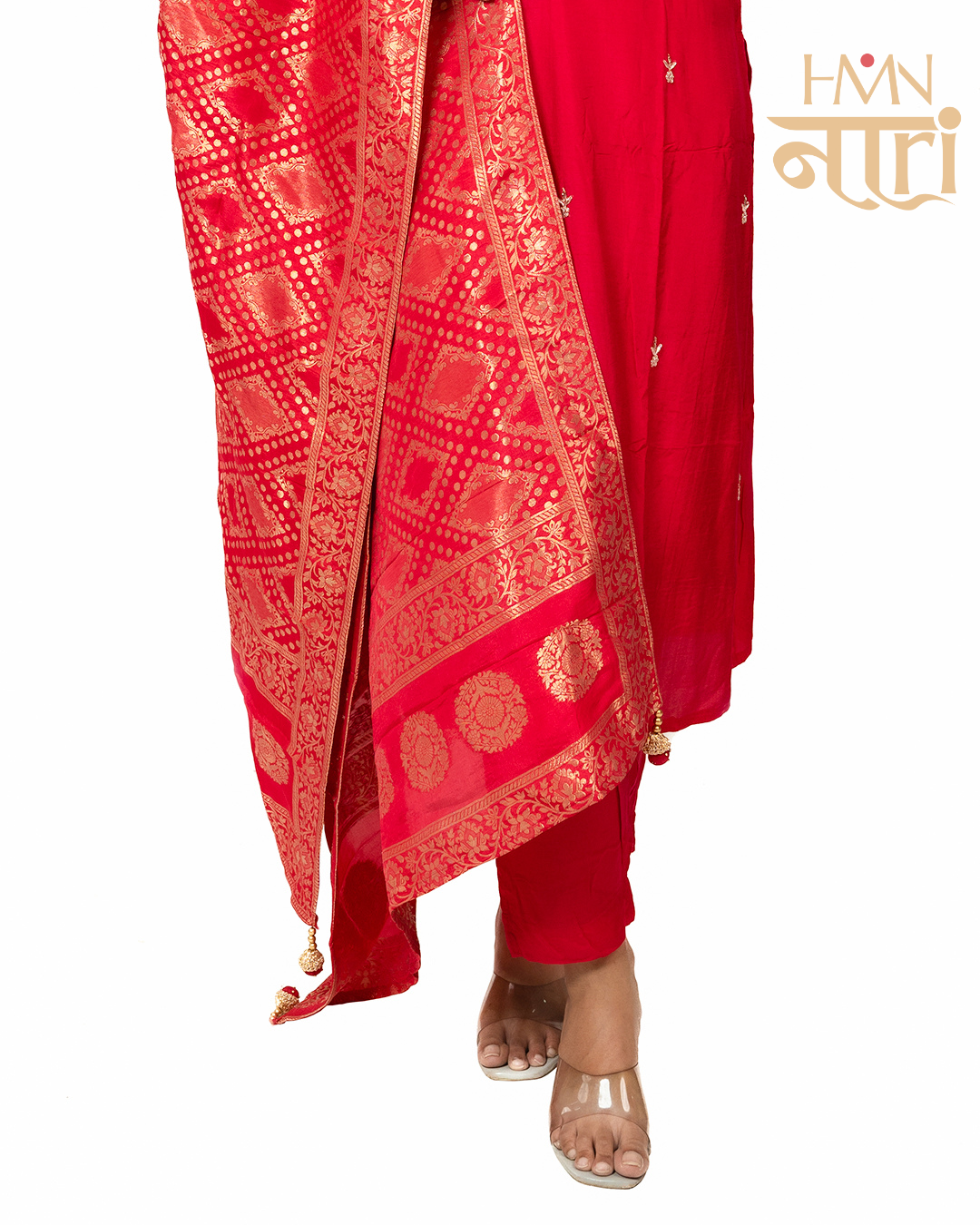 Luxurious Banarasi silk dupatta with golden motifs